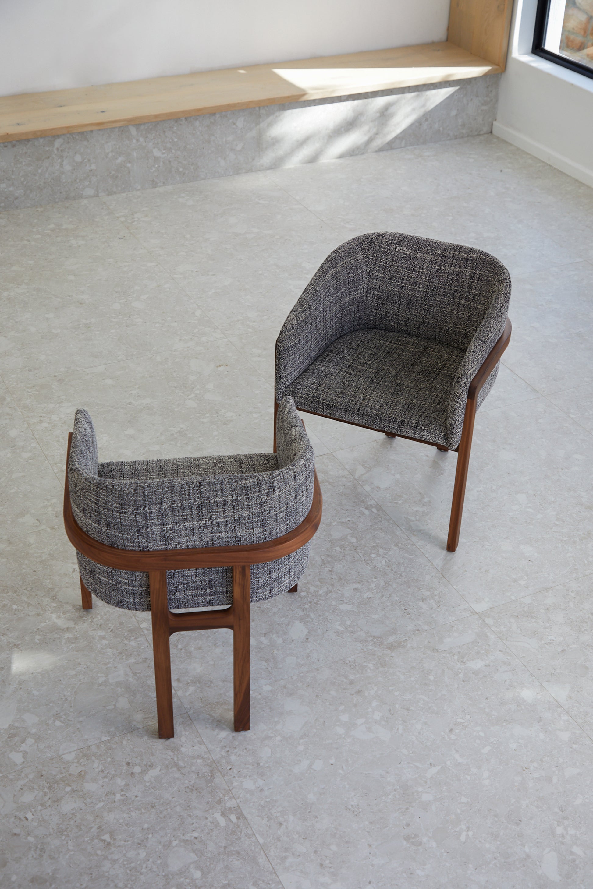 The base of the Hue dining chair is made with high-quality American walnut, which not only adds to the chair's overall aesthetic but also ensures its durability and strength. The walnut base is carefully crafted by skilled artisans to create a sturdy and elegant foundation for the chair.