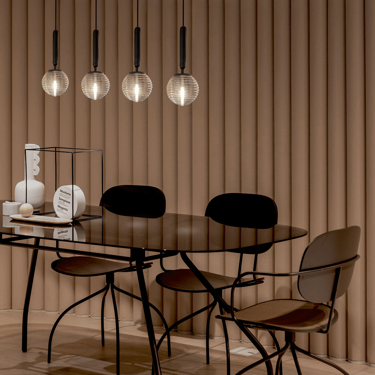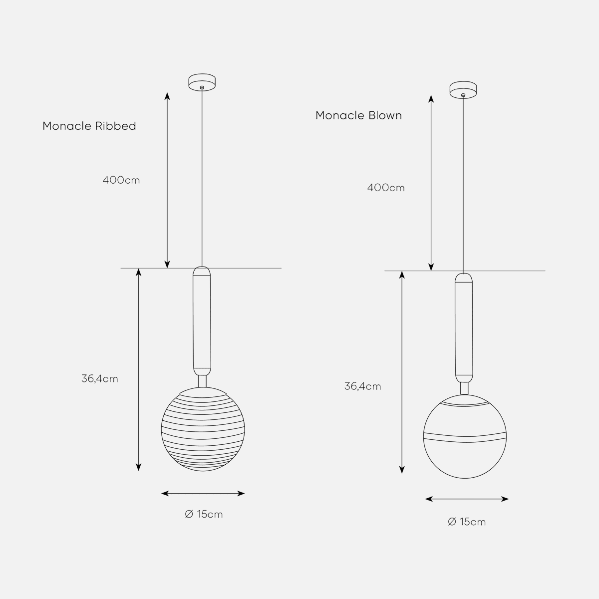 The Monacle pendant is a versatile lighting solution that can be used as a single fixture or in combination. It is available in both ribbed and blown glass finishes and its height is adjustable. With its simple and elegant design, it is a great addition to any space.