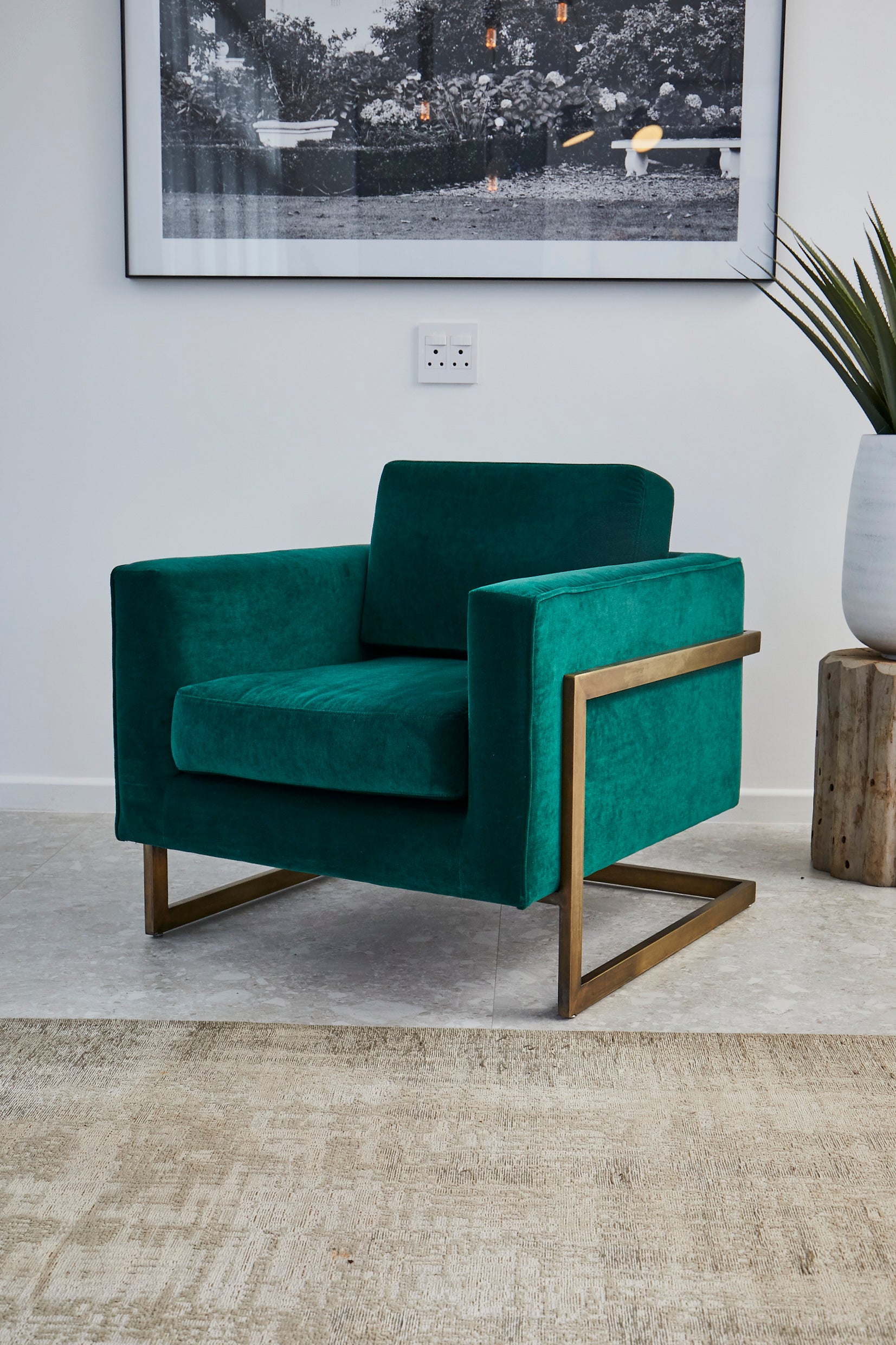 The Nicky occasional chair is a true statement piece that will elevate any space with its eye-catching design. With a mid-century modern style, this chair combines the warmth of brass with the luxury of velvet upholstery to create a truly stunning piece of furniture.
