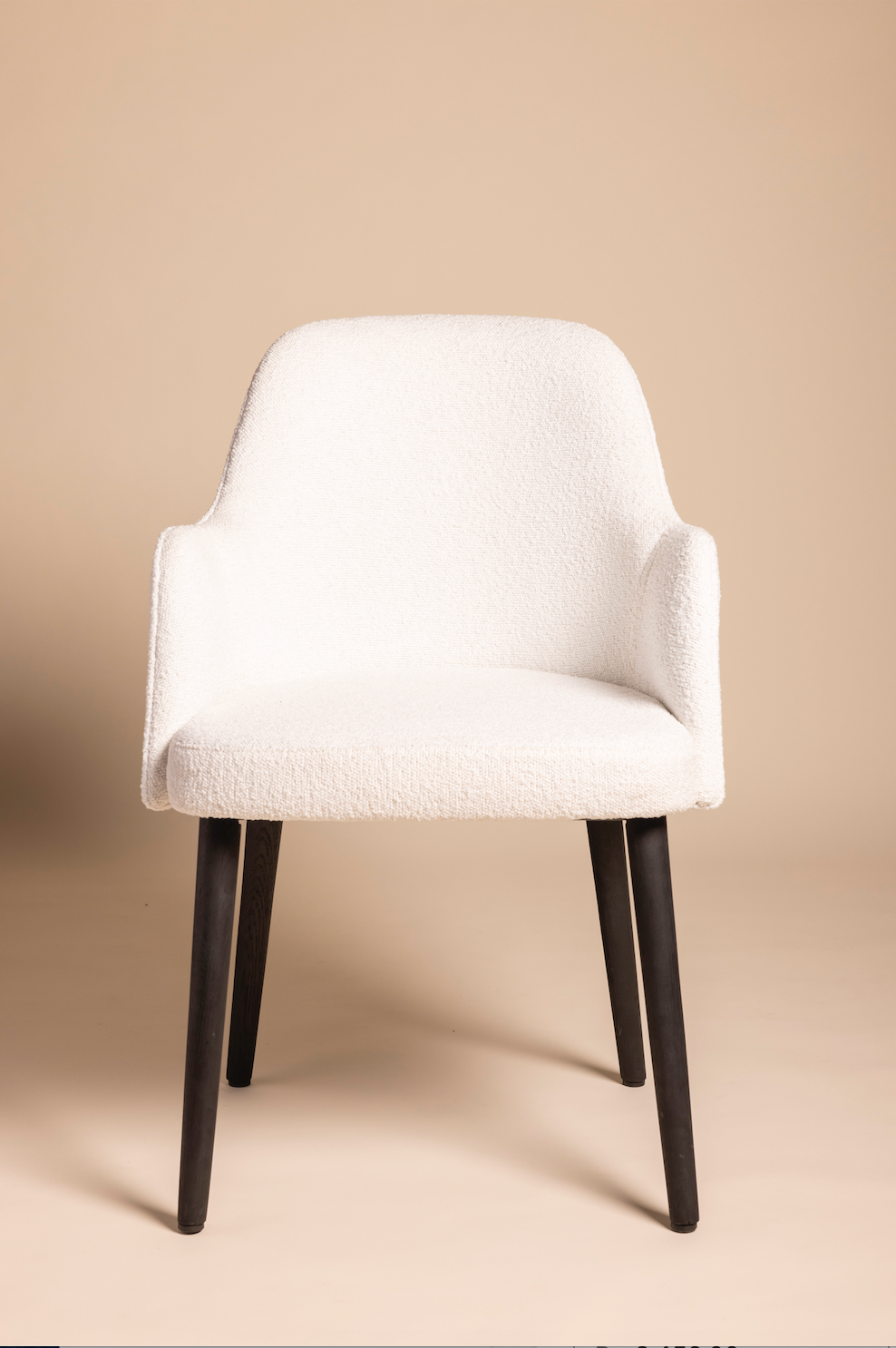 The Sky Dining Chair - An elegant and charming piece. Upholstered top with a stained oak base. Beautiful in any dining setting and incredibly comfortable.